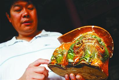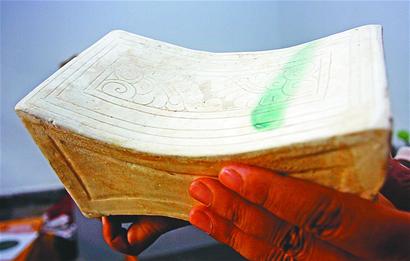 這次發(fā)掘的文物有幾件以前在濟南地區(qū)很少出土,除了上面說的銅印章,還有兩件宋代陶瓷枕。兩件陶瓷枕中完整的一 件為白釉印花枕,長約20厘米,高10厘米,寬11厘米,兩個枕面一側(cè)還有一抹綠色,十分鮮艷。李銘說,這件白釉印花枕所用胎土為高嶺土,文飾清晰,線條 流暢,品相完好,可以說是濟南地區(qū)出土的同類器物中最精美的,也體現(xiàn)出宋代人的審美情趣。另一件為三彩獅子牡丹紋枕,出土?xí)r殘破,現(xiàn)經(jīng)整修,基本復(fù)原了整 體面貌。這件陶瓷枕的枕面上刻印的是牡丹紋飾,牡丹為紅色,周圍有綠色葉子,顯得很是艷麗。枕身主要的一面為一只堆塑的獅子,形態(tài)逼真,富有活力。李銘指 著獅子牡丹紋枕對記者說:“這是一件宋代的三彩器,別看有點殘,但價值比白釉印花枕還要高,因為像這樣做工精美、色彩保存基本完好的三彩陶瓷枕少有出土。 而且這件枕可能是淄博窯的作品,也就是咱們山東自己的窯燒制的,雖然不是著名窯口的產(chǎn)品,但對于山東考古來說具有更高的價值。這樣的陶瓷枕在濟南地區(qū)出土 是非常少見的!