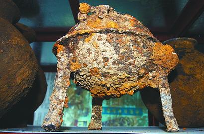 在濟南市考古研究所,記者見到了魏家莊片區(qū)出土的部分文物:10多個漢代和宋元時期的陶罐、1件鐵釜、1個鐵鼎、4個青銅鏡、1枚1.5厘米見方的銅印章、100余枚漢代五銖錢和宋元時期的通寶錢、兩件宋代陶瓷枕、一把銹蝕嚴(yán)重的鐵劍等。