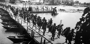 我是從茶峒入秀山的,公路橋被燒掉了,只得走浮橋。浮橋又晃又滑。過(guò)河時(shí),我的鋪蓋由馬馭著,誰(shuí)知橋板太滑,馬失蹄掉江里,鋪蓋也給沖走了。川東南的11月,天天下雨,冷得要命。我從常德出發(fā)只領(lǐng)了一件國(guó)軍黃呢大衣,根本不頂用。到了酉陽(yáng),還是閻紅彥將他自己的一件國(guó)軍棉衣讓給我,我才沒(méi)凍病。
