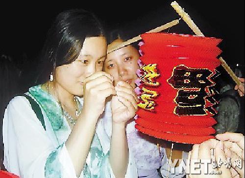 手提燈籠,身著襦裙、青衣,發(fā)髻上的簪子一步三搖,幾十名“古代”女子一出現(xiàn)在后海,就引得其他游人駐足。當(dāng)她們提著燈籠站成一排,仰望星空中的織女星開始“拜織女”時(shí),旁邊的相機(jī)更是閃個(gè)不停!罢嫫粒 币晃挥稳速潎@。
