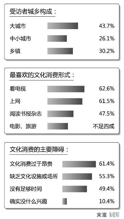 編輯點(diǎn)評(píng):看電視、上網(wǎng),是居民文化休閑活動(dòng)的“主力軍”,折射出我國民眾的文化消費(fèi)形式還較為單調(diào)。