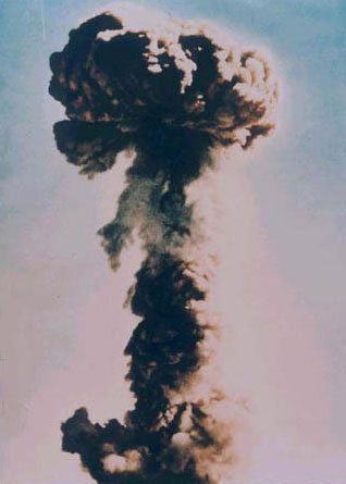 1964年10月16日下午3時。新疆羅布泊上空,我國第一次將原子核裂變的巨大火球和蘑菇云升上了戈壁荒漠。第一顆原子彈爆炸獲得完全的成功。中國成為世界上第5個擁有核武器的國家,極大地提高了中國的國際地位和影響。