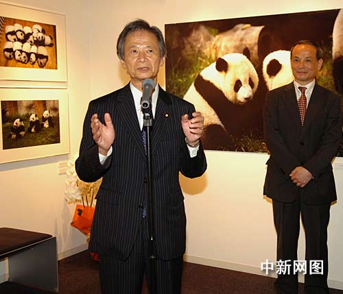 中新網(wǎng)東京9月2日電 (記者 朱沿華) 為慶祝中華人民共和國建國六十周年,旅日華人攝影家馮學(xué)敏個(gè)人作品展《中國四川•熊貓的故鄉(xiāng)》二日在位于東京的尼康沙龍舉辦。中國駐日大使崔天凱、日本參院議長江田五月等中日各界人士近百人當(dāng)場祝賀影展的開幕。