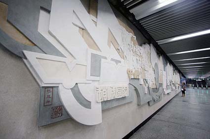 據(jù)記者了解,這些藝術(shù)品由市軌道建設(shè)公司和中國壁畫學(xué)會聯(lián)手,請來知名藝術(shù)家全面設(shè)計和創(chuàng)作。這些藝術(shù)品多裝飾于站廳層或通道的墻壁上。