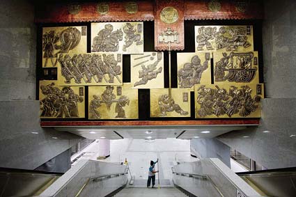 將于9月底通車的地鐵4號線"鎖定"了8個重點車站裝飾藝術(shù)壁畫。