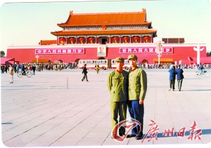 “我們哥倆兒幾乎是同步通過了天安門,這在全國(guó)參加國(guó)慶閱兵的官兵中都是罕見的!52歲的李鳴捷如今是中國(guó)銀行成都高新技術(shù)產(chǎn)業(yè)開發(fā)區(qū)支行行長(zhǎng)。1984年10月1日上午10時(shí)許,展示中國(guó)改革開放和現(xiàn)代化建設(shè)巨大成就的國(guó)慶35周年大閱兵盛典上,李鳴捷在排序第一的軍事學(xué)院方隊(duì),鏗鏘正步走過金水橋旁。此時(shí),弟弟李明偉和戰(zhàn)友駕駛的機(jī)群,也呼嘯長(zhǎng)空,在天安門上空中舞出四色彩煙,共慶盛典。退伍多年,兩兄弟很少主動(dòng)提及這段經(jīng)歷,但當(dāng)年受閱的那身軍裝卻一直珍藏。