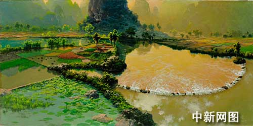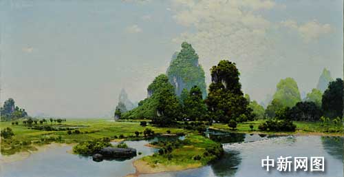 克林姆•李教授評價說,我在桂林看到不少風景畫家,但我非常喜歡李培庚的畫作。透過他的作品可以看出他的深厚功力,他對顏色很敏銳,非常了解處理畫面縱深的感覺,尤其是樹木、云彩、天空的顏色畫得非常的好,色彩的度把握十分恰當。他的每一幅作品都經(jīng)過精心設計,把背景處理得很完美,同時又細細的刻畫中景,非常懂得取舍近景。他畫石頭、山峰和樹,十分仔細地刻畫它們的動態(tài)。他是一位油畫大師,很好地描繪了桂林的風景;他還是一位非常會畫水的大師,我最喜歡的一幅畫是《夏收時節(jié)》,畫家對天空、水兩種事物的顏色結合得特別好,感覺水仿佛就要流出畫框,這是一種大師的境界。他的油畫民族化取得了卓越的成就。