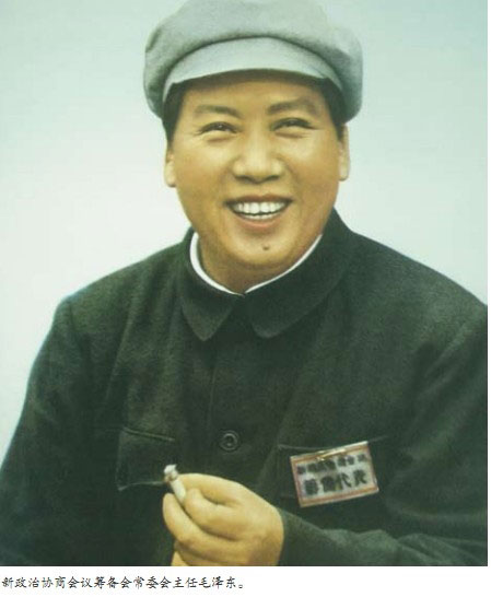 1949年6月11日,新政協(xié)籌備會第一次預(yù)備會在香山毛澤東的住所舉行。會議大體議定了新政協(xié)籌備會的參加單位、人數(shù)和人選,以及新政協(xié)大會參加單位和人數(shù)等。15日晚,新政協(xié)籌備會第一次全體會議在北平中南海勤政殿開幕。出席會議的有23個單位的134位代表,其中“黨員43人,進步人士48人,中間人士43人,其中中間偏右者只有16人,在進步人士中有15個秘密黨員。共產(chǎn)黨對政協(xié)籌備會可保障絕對的領(lǐng)導(dǎo)”。第二天,籌備會協(xié)商通過了由21人組成的常務(wù)委員會,推選毛澤東為常務(wù)委員會主任,周恩來、李濟深、沈鈞儒、郭沫若、陳叔通為副主任。