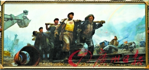 《開(kāi)路先鋒》作者之一魏景山在接受本報(bào)記者采訪時(shí)說(shuō),《開(kāi)路先鋒》創(chuàng)作于1972年,當(dāng)時(shí)恰好是《延安文藝座談會(huì)上的講話》發(fā)表30周年,全國(guó)美展即將舉辦。于是,他和陳逸飛前往南京梅山鐵礦工程采風(fēng)寫(xiě)生,回來(lái)后就畫(huà)了這幅畫(huà)。在這幅長(zhǎng)達(dá)4.5米的油畫(huà)上,一群筑路工人抬著鋼軌在風(fēng)雨中前進(jìn),表現(xiàn)出工人階級(jí)豪邁的氣概。魏景山告訴記者,《開(kāi)路先鋒》實(shí)際創(chuàng)作就陳逸飛和他兩個(gè)人。油畫(huà)的背景是兩人共同畫(huà)的,畫(huà)面上的人物略有分工,“畫(huà)面上,那個(gè)穿黃色背心的年輕工人就是陳逸飛畫(huà)的,我畫(huà)了年紀(jì)比較大的工人!