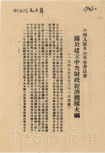 在人民解放戰(zhàn)爭即將在全國范圍勝利的情況下,為了盡可能迅速地、有計劃地恢復(fù)與發(fā)展人民經(jīng)濟,借以供給目前人民革命戰(zhàn)爭的需要及改善人民生活,亟待建立中央的財政經(jīng)濟機構(gòu)。