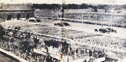 這本1949年由晨光出版公司編輯發(fā)行出版的《開國大典》,封面照片是毛主席在天安門城樓上觀看閱兵式。打開這本巴掌大小的袖珍畫報,里面收錄了39幅開國大典的珍貴照片,其中閱兵式照片28幅,它們從不同角度反映了參加閱兵的步兵、騎兵、炮兵、裝甲部隊、摩托化部隊以及海軍、空軍的英姿,其中許多照片難得一見。