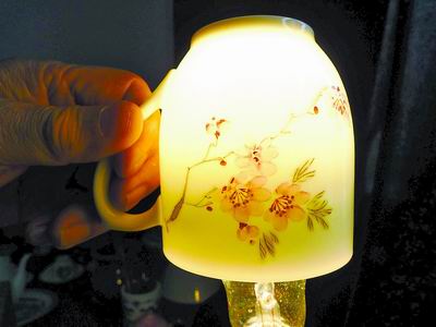 “毛瓷”茶杯是“毛瓷”的經(jīng)典造型——“造型上,只要稍微動(dòng)一點(diǎn)兒,就會(huì)出問題;胎與釉,自然也是最好的;松柴燒制,不但套有匣缽,而且匣缽內(nèi)還要套上個(gè)無釉瓷胎,以免污染瓷器;瓷畫畫的是‘水點(diǎn)桃花’等,幾乎全出自劉雨岑之手;‘水點(diǎn)’畫瓷是劉先生的創(chuàng)新之作,當(dāng)然也是他的拿手好戲;都是手工拉坯,杜絕機(jī)械化操作;采取內(nèi)支燒,瓷器表面不留痕跡,底部不會(huì)刺傷臺(tái)面!睏钕壬f,“‘水點(diǎn)桃花’開在潔白的陶瓷上,活靈活現(xiàn);胎體通靈剔透,不是和田玉,勝似和田玉!