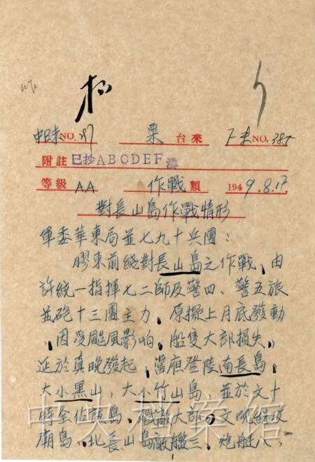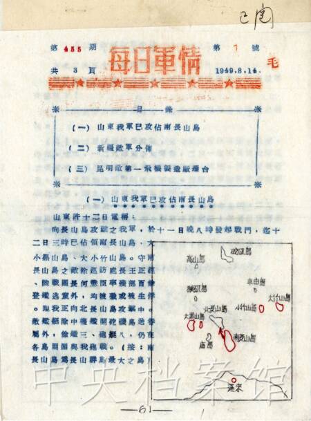 長(zhǎng)山列島位于山東半島與遼東半島之間,扼渤海灣門戶,由南、北長(zhǎng)山島等17個(gè)島嶼組成。山東半島解放后,退據(jù)長(zhǎng)山列島的國(guó)民黨軍陸戰(zhàn)第2團(tuán)等部,破壞漁業(yè)生產(chǎn)和海上交通,妄圖封鎖渤海灣。1949年8月,中國(guó)人民解放軍山東軍區(qū)指揮進(jìn)行解放長(zhǎng)山列島的作戰(zhàn)。11日晚,第24軍第72師和警備第4、第5旅分別從蓬萊縣劉家旺、欒家口、解宋營(yíng)起渡。12日凌晨,警備第4、第5旅攻占長(zhǎng)山列島兩翼大小黑山島、大小竹山島,牽制停泊在南北長(zhǎng)山島的國(guó)民黨軍艦艇。第72師在友鄰配合下,接近南北長(zhǎng)山島,并在炮火掩護(hù)下迅速登島,與國(guó)民黨守軍展開(kāi)激戰(zhàn),上午攻占南長(zhǎng)山島,下午占領(lǐng)北長(zhǎng)山島。爾后以警備第5旅為主,向砣磯島、大小欽島、南北皇城島發(fā)展進(jìn)攻。至20日,國(guó)民黨守軍殘部棄島逃遁,人民解放軍收復(fù)了國(guó)民黨軍隊(duì)占領(lǐng)的大小島嶼,殲國(guó)民黨軍15OO余人,山東省全境解放。