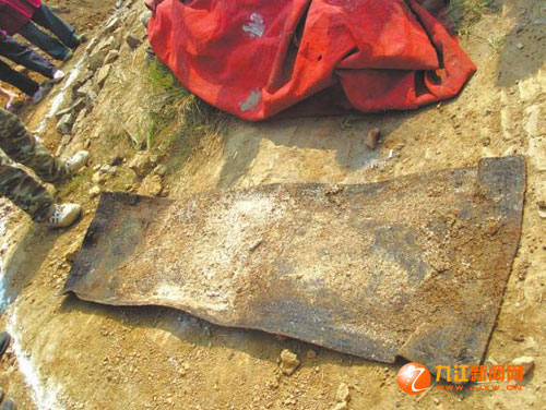 第二天上午記者聞?dòng)嵹s到現(xiàn)場(chǎng),見(jiàn)到一座五六米高的土坡被掘去一半,古墓的白灰空洞懸在土坡切面的半腰處,棺木散落在土方旁。泥地上有一大攤水漬,有人提醒道,別踩著,那是從棺材里流出來(lái)的水。女尸已被人用廢舊的紅地毯裹卷著,停放在不遠(yuǎn)處的平地上,旁邊還有一張潮濕的舊篾席。后來(lái)獲知席子原先墊于尸首下,是從棺木中取出的。仔細(xì)一打量,篾席上長(zhǎng)時(shí)間壓出的人形痕跡清晰可見(jiàn)。圍觀的人越來(lái)越多,不時(shí)有人上前,欲掀開(kāi)地毯一睹新奇,好在兩個(gè)民警一旁維持秩序,好事者才不敢妄動(dòng)。