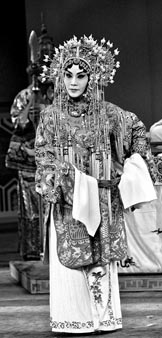 “鎧甲” 行話為“靠”,造型很像甲胄。武將扎上“靠”,表現(xiàn)出人物威風(fēng)凜凜、氣宇軒昂的英雄氣概!榜蕖痹诰﹦》b里,屬于便服,不論哪個行當(dāng)或哪種身份的人物都可以穿這種服裝。旦行的褶子為對襟,略短。褶子如繡有飛鳥、蝴蝶、花卉等圖案的稱為花褶子;沒有刺繡的稱為素褶子!班,繡有團龍團鳳圖案的黃帔,為皇帝、后妃、公主所穿;繡有鶴、鹿、牡丹、花卉等圖案的帔,為宰相、重臣、紳士、夫人等人物所穿;狀元登科和新婚拜禮時穿大紅繡花帔;一般文人學(xué)士只穿素帔。下層人物也各有專門服式。除兵卒的衣外,劊子手、龍?zhí)拙刑囟ǖ囊隆O家、堂倌、書童穿對襟粗布衣褲。還有僧人、道人穿的八卦衣、道姑衣、法衣等。包括各路神仙也有屬于各自的服飾。(職茵 整理)