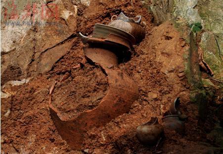 省博物院研究員林忠干勘察現(xiàn)場后認為,這些陶瓷器所處的巖石沒有人工雕琢痕跡,堆放的陶瓷器又多為殘品,又沒發(fā)現(xiàn)杯、盤等一類祭祀常用的器物,且夾在這些器物中的泥土較為松軟,由此可斷定這些器物是由他處移到這里的,且時間并不久遠。