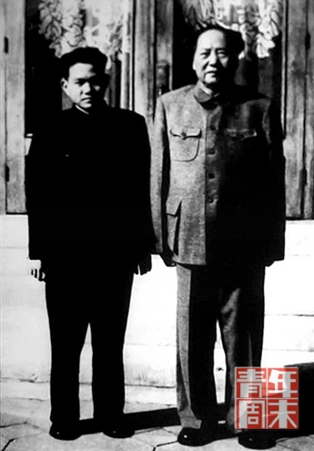 ◎毛澤東與衛(wèi)士長李銀橋的合影