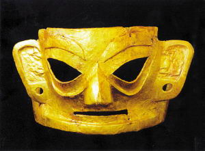 當我們凝視三星堆出土的那尊據(jù)說是蠶叢的驚世駭俗的青銅面具時,那突出的眼睛里仿佛閃爍著一串串永遠無解的密碼。
