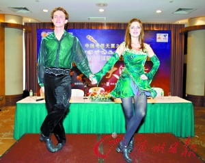 大型歌舞巨作《大河之舞》12月將進行首次大規(guī)模的中國巡演,前日在劇中領舞的兩位靈魂人物來到廣州,為演出造勢。