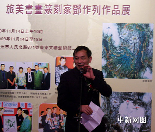 中新網(wǎng)廣州11月14日電(記者 莫非 通訊員 葉藍)旅居美國西雅圖著名書畫篆刻家鄧作列書畫藝術作品展,于2009年11月14日至18日在廣東文聯(lián)藝術館舉行,當?shù)貎S界與藝術界負責人和書畫藝術家、各界友好人士逾百人參加開幕典禮。