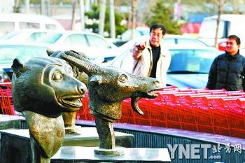 據(jù)了解,該超市于本月11日剛剛開業(yè)。超市負(fù)責(zé)人告訴記者,“十二獸首”并非超市所建,而是屬于超市所在的“城南大道”大廈。負(fù)責(zé)該大廈物業(yè)工作的京豐物業(yè)公司張經(jīng)理說,這十二個獸首是開發(fā)商在修建大廈之初就同時建造的。