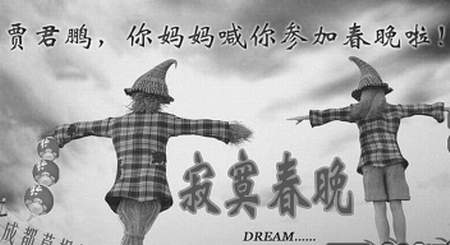 雖然離春節(jié)還有一段時間,但山寨春晚的話題再一次被提起。昨日,以拍攝草根電影、山寨奧運、山寨克隆版《風(fēng)聲》、去年舉辦豬堅強草根春晚而聞名的“成都草根劇組”再一次以樂活精神舉起了成都草根春晚的旗幟——今年,成都的草根春晚將大打網(wǎng)絡(luò)牌,將寂寞黨、賈君鵬等一系列轟動網(wǎng)絡(luò)的熱門話題納入春晚節(jié)目中,且春晚名字就叫做“寂寞春晚”。為了辦好草根春晚,網(wǎng)友正召集綠林草根,為“寂寞春晚”尋找不甘寂寞的坊間好漢以及山寨場地。