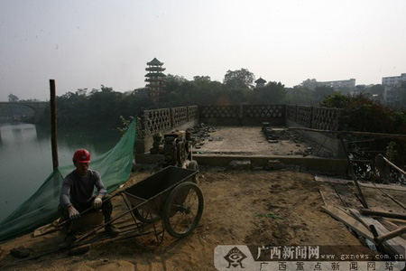 龍州起義鐵橋保衛(wèi)戰(zhàn)舊址項(xiàng)目施工現(xiàn)場(chǎng)。