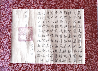 1916年辛亥首義志士大黃申薌之母胡太夫人七十壽誕之際,時任民國大總統(tǒng)黎元洪為之題寫”得天獨厚“橫披,以賀其壽。據紀念館館長梁華平介紹,受以往對其政治評價的影響,黎元洪手書真跡未受應有重視,大多散失。這件“得天獨厚“橫披手跡更是彌足珍貴。 (記者 蔣太旭 通訊員 何廣 實習生 趙紅)