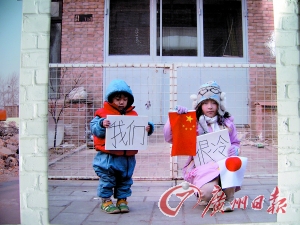 在北京正陽藝術(shù)區(qū)內(nèi)進行的這次“暖冬”計劃的首展可謂傳統(tǒng)與另類并行。藝術(shù)家們通過各種各樣的表現(xiàn)手法來表達自己對于拆遷的態(tài)度。走進滿是磚石瓦礫的藝術(shù)區(qū),整個藝術(shù)區(qū)本身似乎就是一件藝術(shù)品,大門內(nèi)是一大片墻體倒塌所形成的廢墟,非常有視覺沖擊力,走進藝術(shù)區(qū)內(nèi),在房屋的墻壁上,到處是藝術(shù)家們粉刷的紅紙黑字的大標語,要求開發(fā)商“還水還電”,來自798藝術(shù)區(qū)的藝術(shù)家黃銳在寒風(fēng)中專心致志地在藝術(shù)區(qū)內(nèi)的地板上勾畫自己的作品道具——一個畫在磚頭地板上的陰陽八卦圖形。他還撐著一把黑白兩色的傘,在自己勾畫的陰陽八卦里跳來跳去。