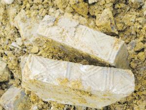 走下山坡看見山腰中間留下了大量挖土機(jī)機(jī)爪的痕跡,抓痕里不時夾雜著一些墓磚。繞過中間的池塘,我們來到對岸的山坡。同樣,這里也是一處墓群,地面上墓磚被丟棄一地,考古專家告訴記者,從土層暴露出來的墓磚看,也是三座大墓,“中間一座肯定是近日被挖開的,這些堆土是新填的,盜墓賊已經(jīng)將古墓洗劫一空,然后做了偽裝,把挖開的古墓又填埋了”。據(jù)他介紹,這三座古墓全都是東西向葬式,墓形都很大,從墓形規(guī)?梢詳喽,這是一處六朝早期的貴族墓群。