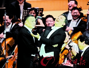 前晚,指揮家余隆在北京迎來(lái)“海派清口”周立波,兩人跨界合作的“歡樂頌·交響音樂‘新’賞會(huì)”笑聲不斷。首次北上的周立波,雖然是用普通話來(lái)“詼解”交響樂,但并未影響笑果,北京觀眾以大笑和掌聲回應(yīng)了這場(chǎng)別具一格的演出。