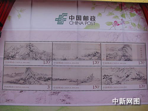 中新網(wǎng)常熟3月20日電 (記者 唐娟)20日上午,以《富春山居圖》整幅畫卷為藍本的特種郵票首發(fā)儀式首先在黃公望的家鄉(xiāng)江蘇常熟舉行。黃公望公元1269年出生于江蘇常熟,死后亦安葬于此。在常熟石梅廣場舉行舉行的揭幕儀式上,郵票設(shè)計師郝旭東表示,自己能設(shè)計郵票很榮幸,希望能通過郵票傳承中國文化,并促進兩岸的文化交流。他下午還將趕赴在浙江出席豐相關(guān)的慶;顒,據(jù)了解,今日下午,在浙江舉行的首發(fā)儀式上,蔡友等3位臺灣藝術(shù)大學(xué)的知名畫家以及包括浙江畫院院長孫永在內(nèi)的6位大陸知名畫家,將共同揮毫潑墨,在15米的長卷上重新繪制《富春山居圖》。