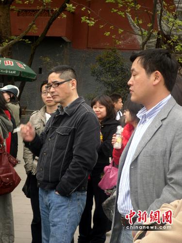 中新網(wǎng)成都4月5日電 (劉豐)5日上午,一批特殊的“迎水使者”——以蘇童、李西閩、謝有順、譚繼和為代表的華人作家、評(píng)論家、學(xué)者來到都江堰離堆公園,拉開了沿都江堰灌區(qū)的迎水感恩之旅。