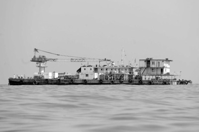 海面上海風(fēng)颼颼,盡管身形龐大的“南天順”穩(wěn)如泰山,但摩托艇卻在海面上搖搖晃晃。借著高倍相機鏡頭,記者注視著“南天順”打撈船上的舉動。上午10時左右,2名身穿潛水服的隊員潛入水下,大約半個小時后,一批下水隊員出水。隨后,另有一批隊員再次下水作業(yè)。
