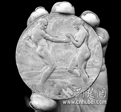 記者在艾家看到,這是一塊澄黃的圓牌,直徑約70毫米,獎牌一面是一對青年男女,另一面是一棟建筑,寫有“巴拿馬太平洋世界博覽會”的英文字樣(如圖)。