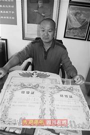“這張海報有人出價萬元,我都不舍得賣!弊蛉丈衔10時許,見有人來訪,50歲的李杰拿出自己最愛的寶貝——一張梅蘭芳宣傳畫,這是新中國成立前印制的。宣傳畫上,京劇大師梅蘭芳面帶微笑,依靠在一張沙發(fā)上,宣傳畫的題詞為郭沫若!靶∥輭Ρ谏,都是精選出來的。在我家的保險柜里還有近千幅海報,各種各樣的都有!崩罱苷f。