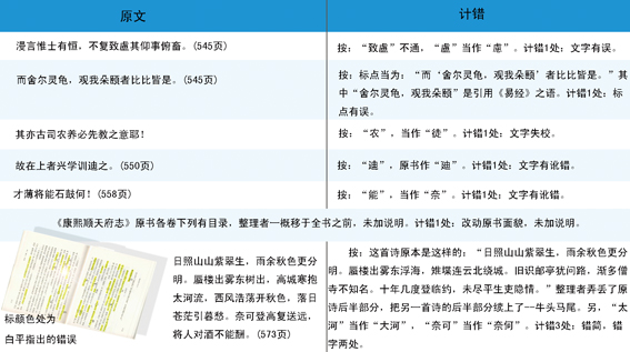 王德怡稱,目前所發(fā)現(xiàn)的閻校本《康熙順天府志》中出現(xiàn)的錯誤,集中出現(xiàn)在第七、八卷。清人張吉午《康熙順天府志》原有八卷,現(xiàn)存七卷。從第六卷開始,內(nèi)容開始變得復(fù)雜,處理起來難度也增加了許多。閻校本出現(xiàn)的錯誤大致分為三類:一是錯別字;二是標(biāo)點符號錯誤;三是注釋錯誤。