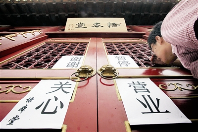 但恢復(fù)營業(yè)僅一天,今天上午9時(shí)許,位于奧體中心西南門的悟本堂卻掛出了“暫停營業(yè),謝謝關(guān)心”的告示。