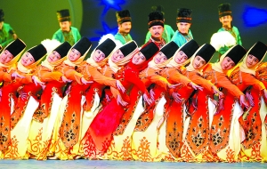 《萬方樂奏》晚會以和田維吾爾族歌舞為主,由“序幕”、“有于闐”、“在綠洲”、“頌今朝”和“尾聲”5大板塊共14個節(jié)目組成。其中,萊帕爾歌舞《黨中央的政策亞克西》曾登臺今年央視春晚,備受觀眾歡迎。此外男子集體舞《大漠鼓舞》里,小伙子們手持面鼓擊鼓吟唱、頗具遠(yuǎn)古遺風(fēng)。女子集體舞《玉鐲舞》中,舞者佩戴玉鐲,婀娜起舞,清脆作響,猶如天女下凡。而融入了西域健舞、軟舞等舞蹈元素的《于闐樂舞》也再現(xiàn)了唐代宮廷歌舞的精華,表現(xiàn)了絲綢之路多元而厚重的文化。還有男女集體歌舞《豐收麥西來甫》融入了和田賽乃姆(維吾爾族舞蹈的一種)的藝術(shù)特點,完美詮釋了綠洲喜慶、歡騰、和諧幸福的生活場景。整臺演出匯集了民間說唱、民族歌曲、民間舞蹈、民族器樂等多種藝術(shù)樣式,展示了充滿魅力的和田人文風(fēng)情。 (記者 李洋)