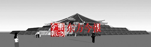 郭黛姮說:此次設(shè)計為了避免過大的體量對整個遺址公園造成不協(xié)調(diào)的沖擊,對建筑外立面進行綠化覆蓋,使其與周圍的公園綠化合為一體。特別是明堂房頂上將種上草皮。