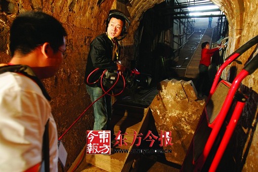 在墓穴底部,有一堵高約1米的土墻,記者注意到,墻內鑲嵌著一些磚瓦片,已經(jīng)露出。據(jù)考古人員介紹,在12日的發(fā)掘中,考古人員極有可能剝開該堵墻,至于有無重大發(fā)現(xiàn),值得大家期待。