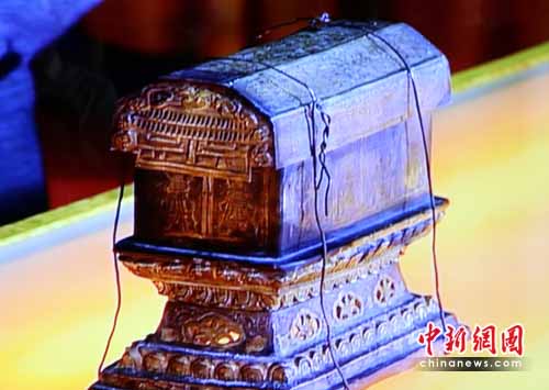 2008年南京發(fā)掘大報恩寺遺址,發(fā)現(xiàn)大報恩寺是在宋長干寺地宮上重建的,并出土了一塊刻有《金陵長干寺真身塔舍利石函記》的碑文,碑文記載“長干寺葬佛頂骨舍利”。在地宮中,一個大鐵函被請出地宮,隨后在南京博物院考古專家從鐵函中請出了七寶阿育王塔,并在塔內(nèi)發(fā)現(xiàn)有二套可能盛放舍利的容器,一套鎏金銀槨;另外一套為方形銀函槨、函內(nèi)都有安置舍利的金棺,佛頂真骨安奉其中。
