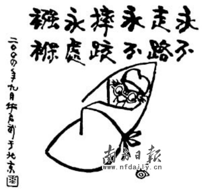 我在中央美院學習的時候,他在《人民日報》做編輯,經(jīng)常會到中央美院。1960年,我在北京農(nóng)民運動講習所畫歷史畫的時候,他和美術(shù)界領(lǐng)導人王朝聞、蔡若虹等對我的創(chuàng)作都有關(guān)注。華君武老師為人正直,對年輕一代沒有架子,講話幽默風趣,令人回味再三。他對年輕畫家愛護有加,就像朋友一樣沒有架子。我們在上世紀80年代曾經(jīng)一起在深圳開會,當時我畫了他的肖像畫,他的題跋非常有趣。