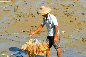 直到上世紀中葉,虎山村90%的農(nóng)村家庭都以賣泥魚所得作為家庭收入的主要來源,經(jīng)常成群結(jié)隊外出捕魚。至今當?shù)卮迕襁把廣闊的灘涂親切地稱為“泥夾萬”(粵方言,意思是指灘涂上的銀行)。