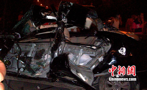 5日夜11時(shí)40分許,揚(yáng)州市東區(qū)解放北路文昌花園北大門發(fā)生一起惡性交通事故,一輛牌照為蘇KB9652本田轎車從解放北路由西向東行駛,由于車速過快為避讓與前方行駛的出租出追尾時(shí),肇事車駕駛員緊急剎車,在剎車時(shí)向右打了一把方向,轎車頭朝南車尾朝北向前滑出30多米后撞上停在路邊的大卡車尾部,停在路邊掛在檔上的大卡車被撞發(fā)動(dòng)起來,向前開動(dòng)了200米左右撞在一輛停放在路北側(cè)的一輛中型卡車停下。肇事轎車上四名年輕男子均受傷,其中兩人傷勢(shì)嚴(yán)重。