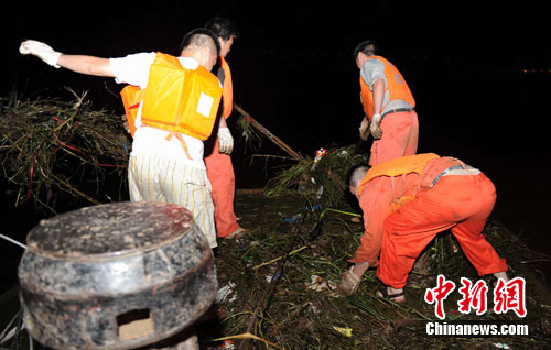 中新網(wǎng)重慶7月19日電(郭虹 朱治宇) 預(yù)計今天下午5時過境的長江今年以來最大洪峰將晚點3個小時,于晚八點左右通過重慶主城。連續(xù)兩日來,江水上漲了15米多,江水不僅淹沒了江邊一些房屋,江中的漂浮物還對江上航標(biāo)形成威脅。