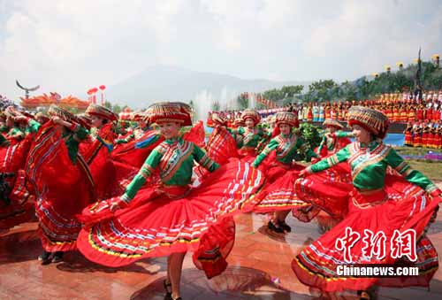 中新網(wǎng)西昌8月4日電(記者劉忠俊)4日上午,四川涼山州西昌市數(shù)千名群眾身著節(jié)日盛裝,跳起了獨(dú)具民族特色的歌舞,拉開了第六屆中國(guó)•涼山彝族國(guó)際火把節(jié)的序幕。