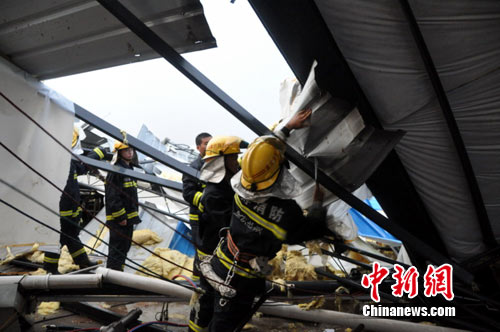 18時(shí)50左右,消防官兵趕到現(xiàn)場(chǎng)了解到,一家名為圣超塑料制品廠(chǎng)和一家名為玉義教學(xué)設(shè)備廠(chǎng)各4000平方的彩鋼廠(chǎng)房被強(qiáng)風(fēng)吹垮。圣超塑料制品廠(chǎng)負(fù)責(zé)人稱(chēng),當(dāng)時(shí)有7名工人正在廠(chǎng)房?jī)?nèi)工作,幸虧垮塌時(shí)工人們反應(yīng)敏捷及時(shí)逃離。