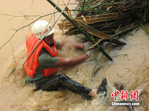 中新網(wǎng)廣州9月23日電(張乾鑠 孫江敏 朱超鵬)筆者23日從廣東省消防總隊(duì)獲悉,今日上午10時(shí)許,廣東近日洪災(zāi)災(zāi)區(qū)之一的陽(yáng)江市政府三防辦發(fā)出警令,稱陽(yáng)江雙捷攔河大壩近三分一泄洪孔被堵,若不及時(shí)清除,將無(wú)法排泄上游陽(yáng)春市通過漠陽(yáng)江涌來(lái)的洪水,有沖垮攔河大壩的可能。