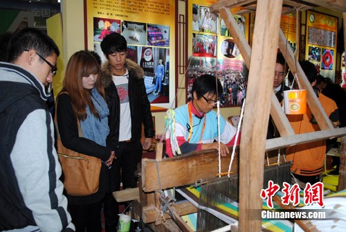 徜徉楊凌農(nóng)高會(huì)其間,記者看到,1日至3日,100名婦女手工藝能手集中亮相楊凌農(nóng)高會(huì),參加陜西省第二屆婦女手工藝品技能大賽。在人氣最旺的一架架老式的織布機(jī)前,梭子、彩線在婦女們手中跳躍,彩條、方格、提花、柳條等各色土布就這樣一點(diǎn)一點(diǎn)“長(zhǎng)”出來,賺足了觀眾的“眼球”。